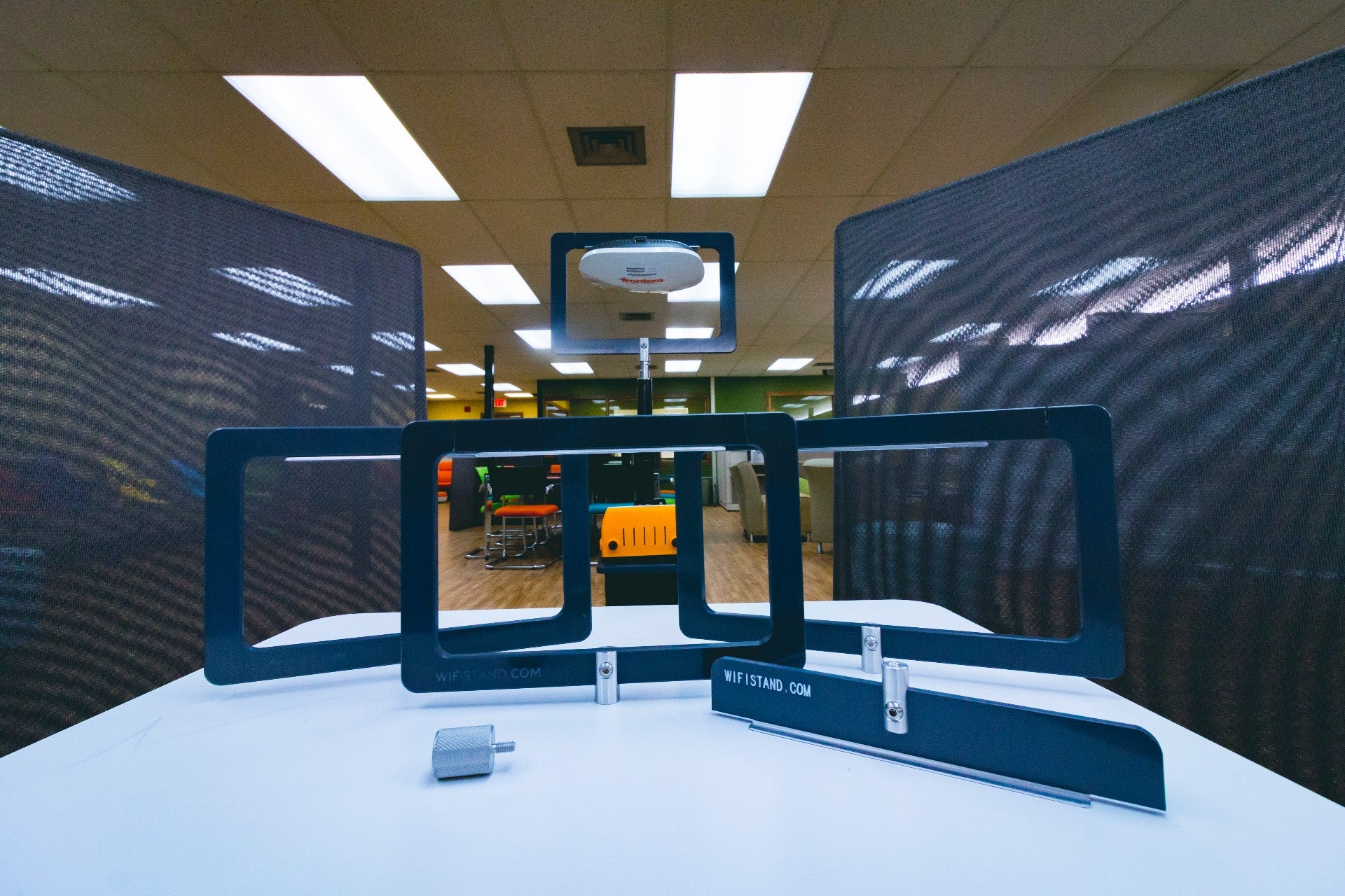 Machined out of industrial grade, sturdy, lightweight PVC, enforced by aluminum, and slim enough for a laptop bag. The WiFiStand is a simple device that attaches to standard inexpensive poles in seconds. Sturdy enough for even the heaviest devices. Uses a 24mm rail, standard with almost all AP models!